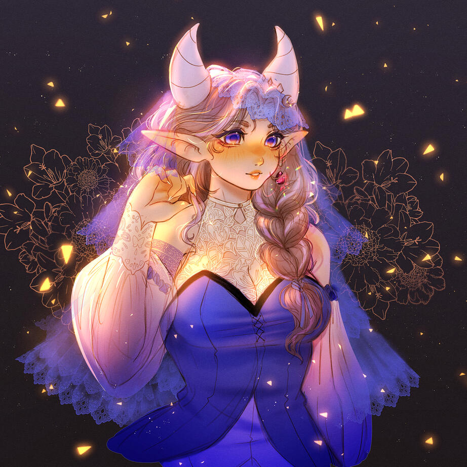Our current main look is the Moon Elf Druid made by the lovely MadQueenMomo on Bluesky.